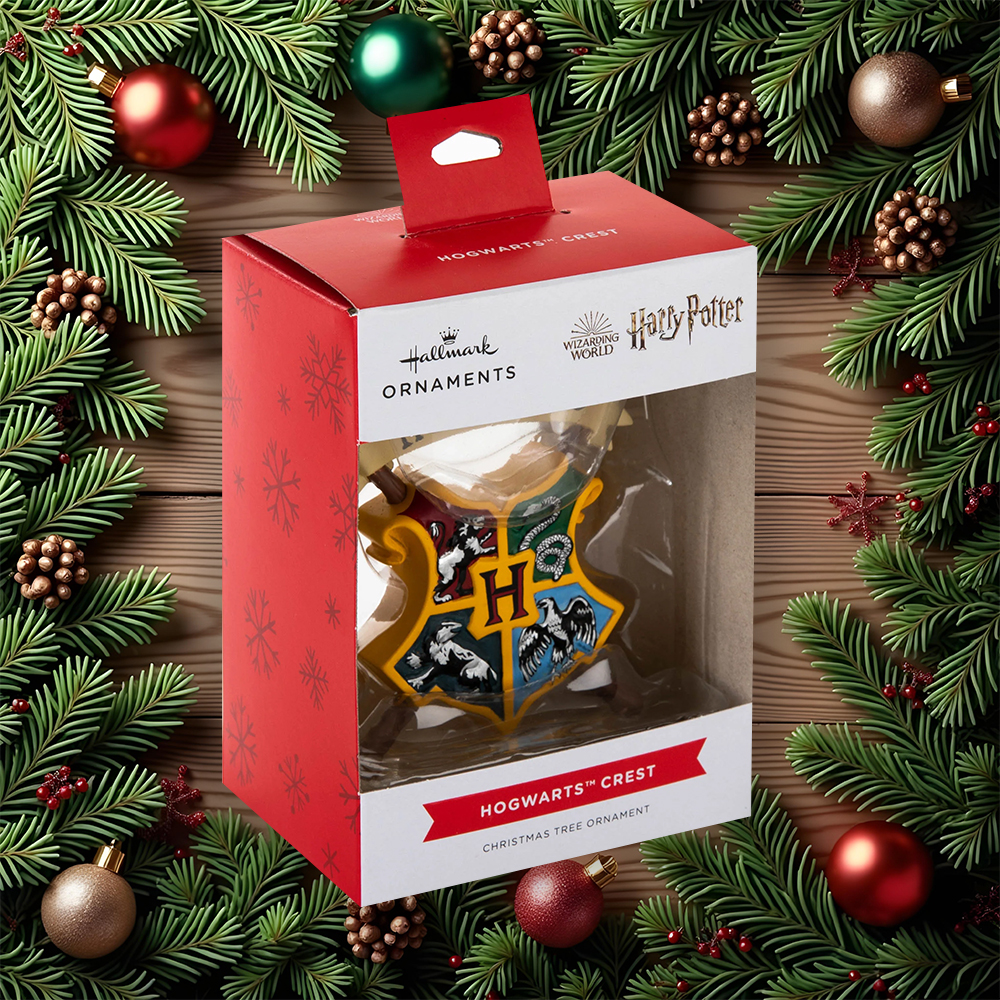 Celebrate the magic of Hogwarts this Christmas with a beautiful Hogwarts Crest Ornament, featuring the crests of all four legendary houses. From brave Gryffindor to clever Ravenclaw, kind Hufflepuff to cunning Slytherin, this decoration brings the whole school together in one striking design.